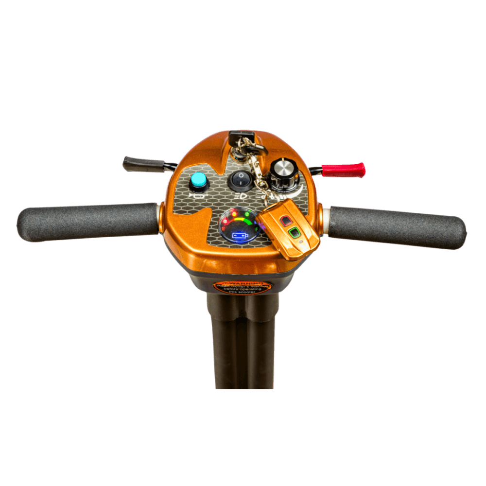 The EV Rider Transport AF+ includes a tiller-mounted controller that houses an on/off switch, speed dial, battery indicator, and a warning horn. This layout provides easy access to all key controls without needing to stretch or strain, making operation straightforward for all users. Whether you’re adjusting speed or checking battery levels, everything is within fingertip reach.